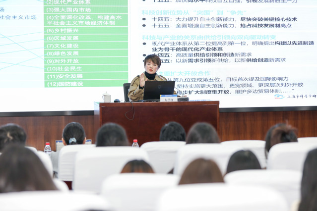 1118日下午,由中共上海市委宣传部、yL23411永利官网登录共同主办yL23411永利官网登录承办的2025年度“新时代的中国”国情教育系列讲座第六讲,在yL23411永利官网登录国际教育中心一楼报告厅举行。上海市科学学研究所副所长朱学彦同志以“‘十五五上海国家科创中心建设:底层逻辑与展望为题,结合党的二十届四中全会精神与十五五规划部署,为在场师生带来一场深入浅出、视野宏阔的科技战略解读。讲座由yL23411永利官网登录yL23411永利官网登录院长吴瑛主持。