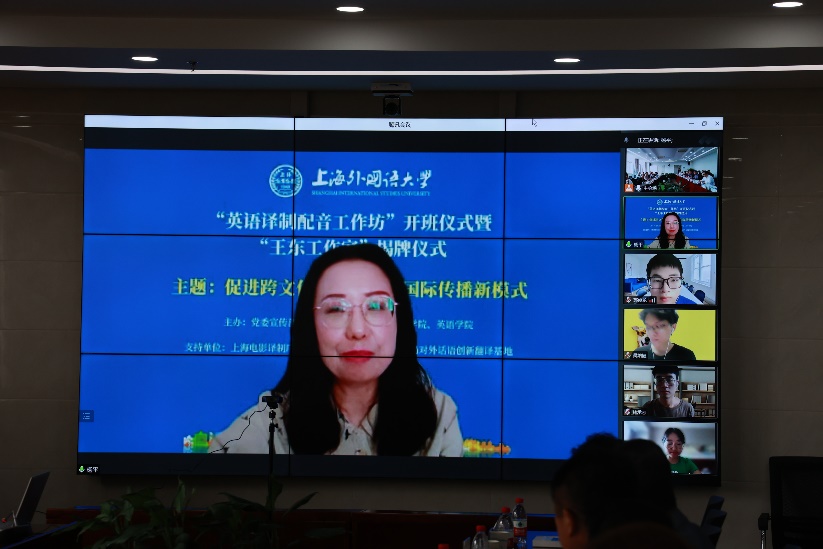 活动由上外新传学院院长郭可主持,校党委常委、宣传部部长衣永刚,高翻学院院长张爱玲,英语学院院长王欣,上海电影译制厂厂长刘风,当代中国与世界研究院党委书记、《中国翻译》杂志主编杨平,上海纽约大学传播部主任、原联合国全球传播部新闻与媒体司司长姜华,上外新传学院特聘教授、中国电影英译导演王东等为王东影视译制工作室揭牌。此外,开班仪式现场还邀请到多位王东工作室成员,为校内选拔出的第一批22名学生指导授课。