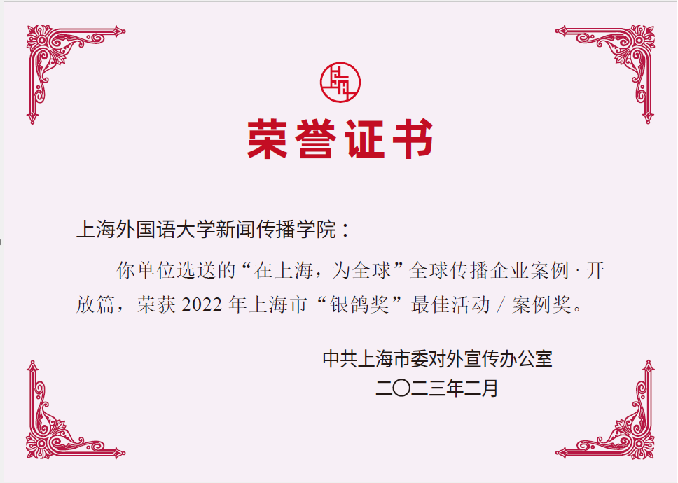 “在上海,为全球”系列5个案例荣获2022上海市“银鸽奖”