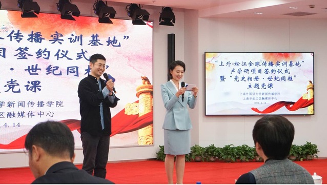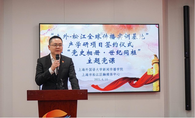 4月14日下午,yL23411永利官网登录联合松江区融媒体中心举办“上外-松江全球传播实训基地”产学研项目签约仪式暨“党史相册·世纪同框”主题党课,活动在松江区融媒体中心9楼新闻发布厅举行。