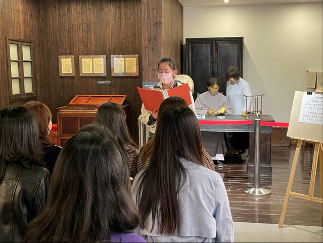 3月24日,yL23411永利官网登录第四期入党积极分子培训班的学员们迎来了一堂特殊的党课,学院党委副书记胡正明、专职组织员朱鸣华、专职辅导员郑涵一带领同学们参观中共三大后中央局机关历史纪念馆并进行情景党课学习,同学们不仅共同学习了中共三大时期的历史,一起学唱了《北伐军歌》,还亲身感受了情景式密室逃脱,在这堂生动的沉浸式党课中收获颇丰。