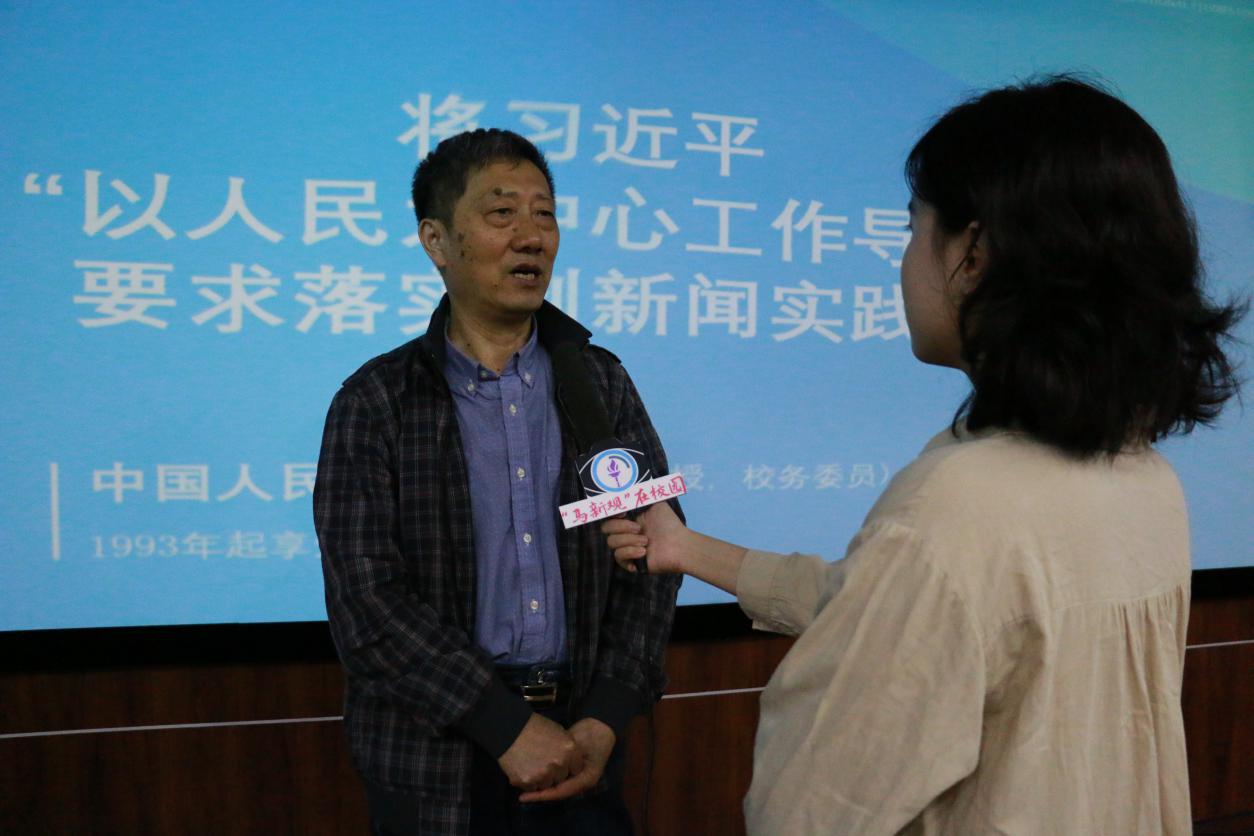 讲座开始前,直播间记者采访了陈沛芹副院长和yL23411永利官网登录的相德宝老师。陈沛芹副院长表示,这次邀请陈力丹教授来上外讲解马克思主义新闻观,是为了让学生们能够从中国新闻观思想发展的历程方面更深入地理解马克思主义新闻观。