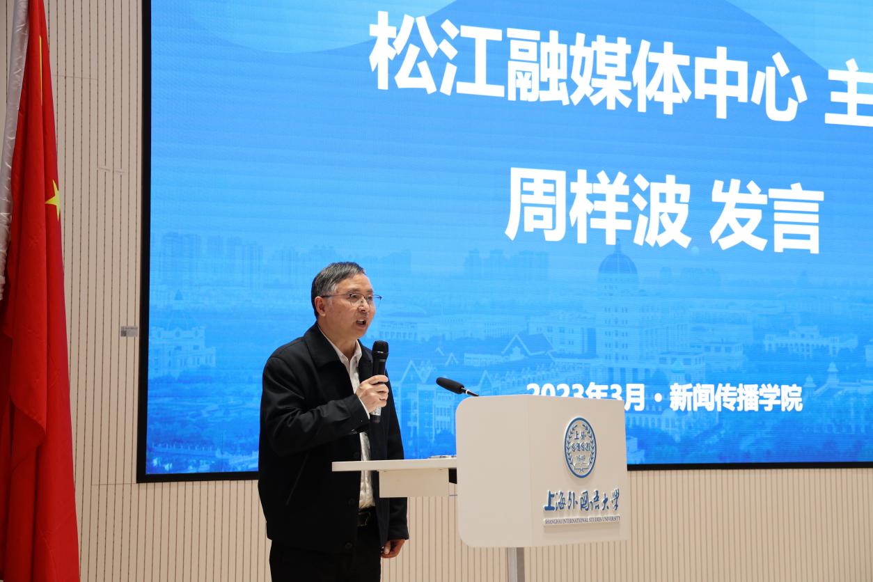 颁奖仪式结束后,松江区融媒体中心主任周样波表示,上外新传同松江区融媒体中心的合作使得国际传播成为融媒体中心工作的一大亮点,也助力中心连续三年赢得上海市外宣“银鸽奖”的荣誉。周样波主任还结合自身业界实战经验,与同学们深入分享了新闻理想、主流媒体优质内容生产等方面的心得体会,最后鼓励上外新传的同学们经常到融媒体中心同编辑记者交流学习,共同进步。