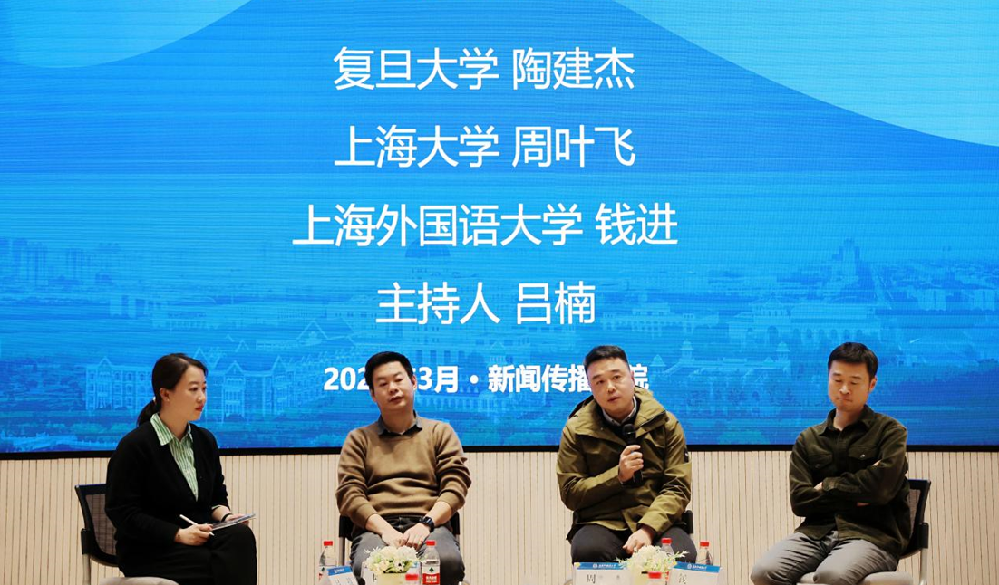 此次活动还对实践与学术之间的关系进行了深入探讨,专门在“实践育人创新与研究转化”专家对谈环节就国际新闻传播人才培养实践进行了学理化的反思和讨论。活动邀请到复旦大学陶建杰教授、上海大学周叶飞副教授、yL23411永利官网登录钱进副研究员参加对谈,yL23411永利官网登录吕楠博士主持对谈。