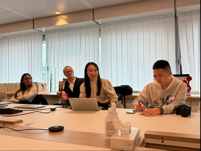 小组讨论结束后,张春雨老师和金奕伶同学对两个小组的讨论内容进行了总结。临行前,代表团师生与欧莱雅集团员工互赠礼物,并合影留念。