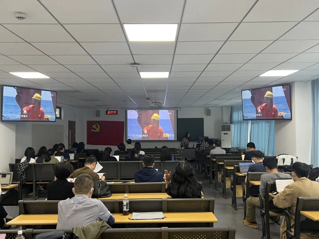随后,全体教工共同观看学习了视频《时代楷模万步炎先进事迹》。万步炎带领团队研发了中国首台深海钻机“海牛Ⅱ号”,创造了世界记录,被授予“时代楷模”称号。38年来,万步炎带队克服重重困难,刷新海底钻机钻深纪录,见证我国海洋矿产勘探开发技术的飞跃,在2000米深海“钻”出“中国自信”。