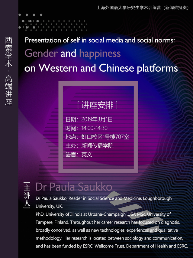 西索学术·高端讲座 | Paula Saukko:社交媒体中的自我呈现