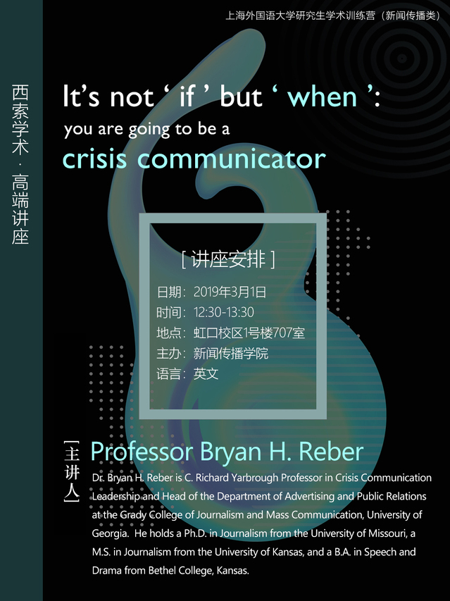 西索学术·高端讲座 | Bryan H.Reber:危机沟通策略