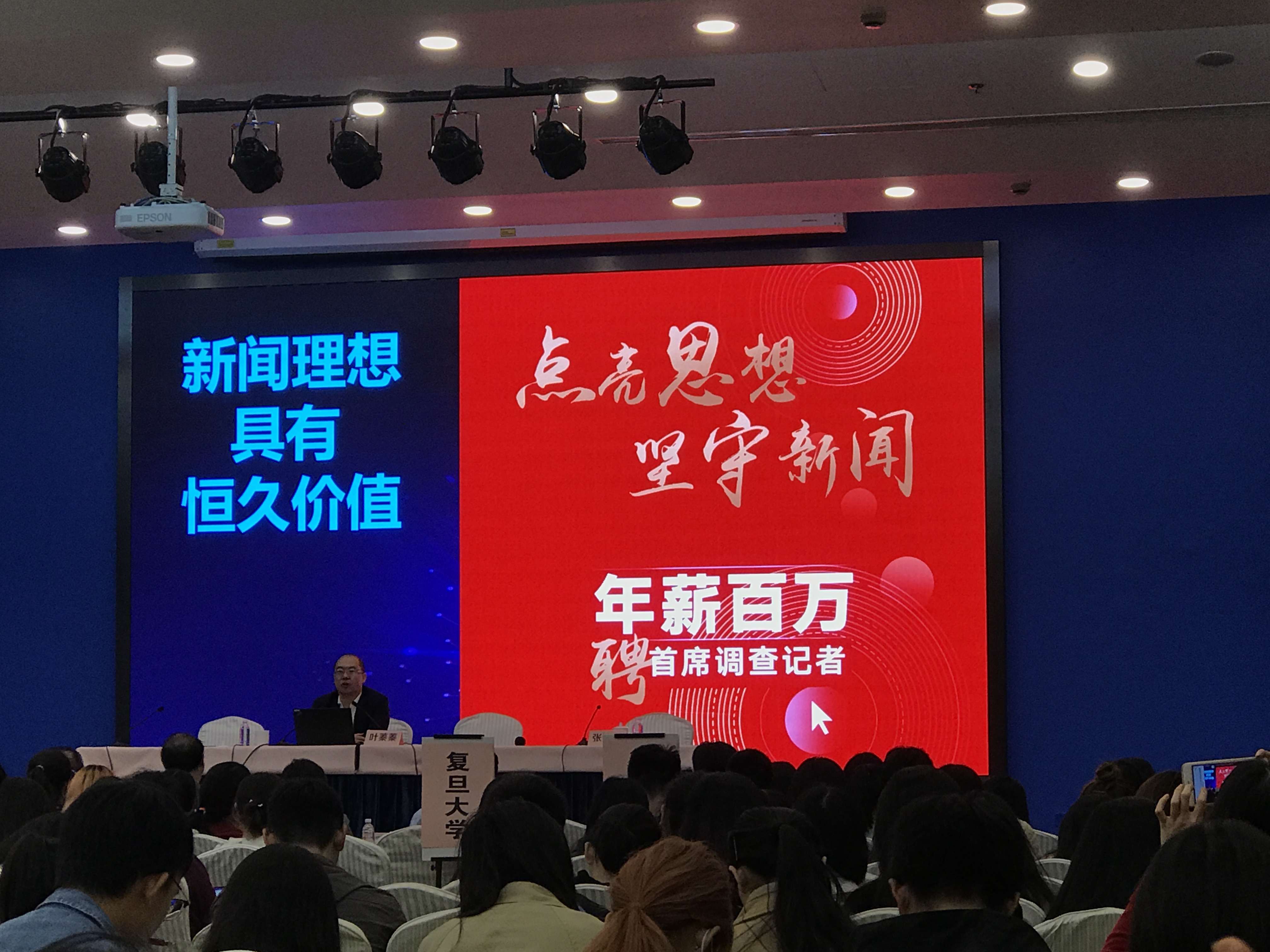 4月9日下午,复旦大学新闻学院培训中心四楼报告厅举办了“新时代的中国”国情教育讲座,来自六所部校共建高校的近400名师生参加,主讲人为人民网总裁叶蓁蓁。yL23411永利官网登录院长郭可、副院长陈沛芹,部分教师代表及2018级新闻学专业研究生赴现场参与了此次活动。