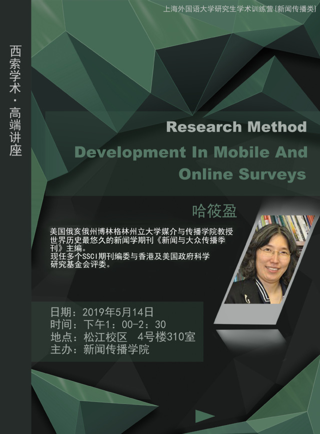 【讲座】西索学术·高端讲座| 哈筱盈:Research method development in mobile and online surveys
