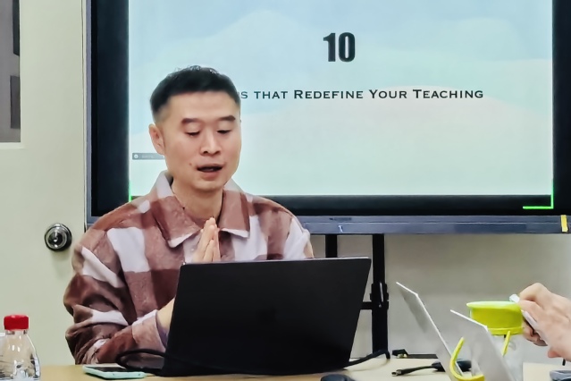 111日下午,yL23411永利官网登录副研究员钱进带来《智能技术驱动的教学革新:AI在课堂中的实践与应用》师说教学经验分享沙龙,吸引现场和云端30多位教职工、博士生参与,共同探讨智能技术在新闻传播学、外国语言文学等学科教学中的实际应用。