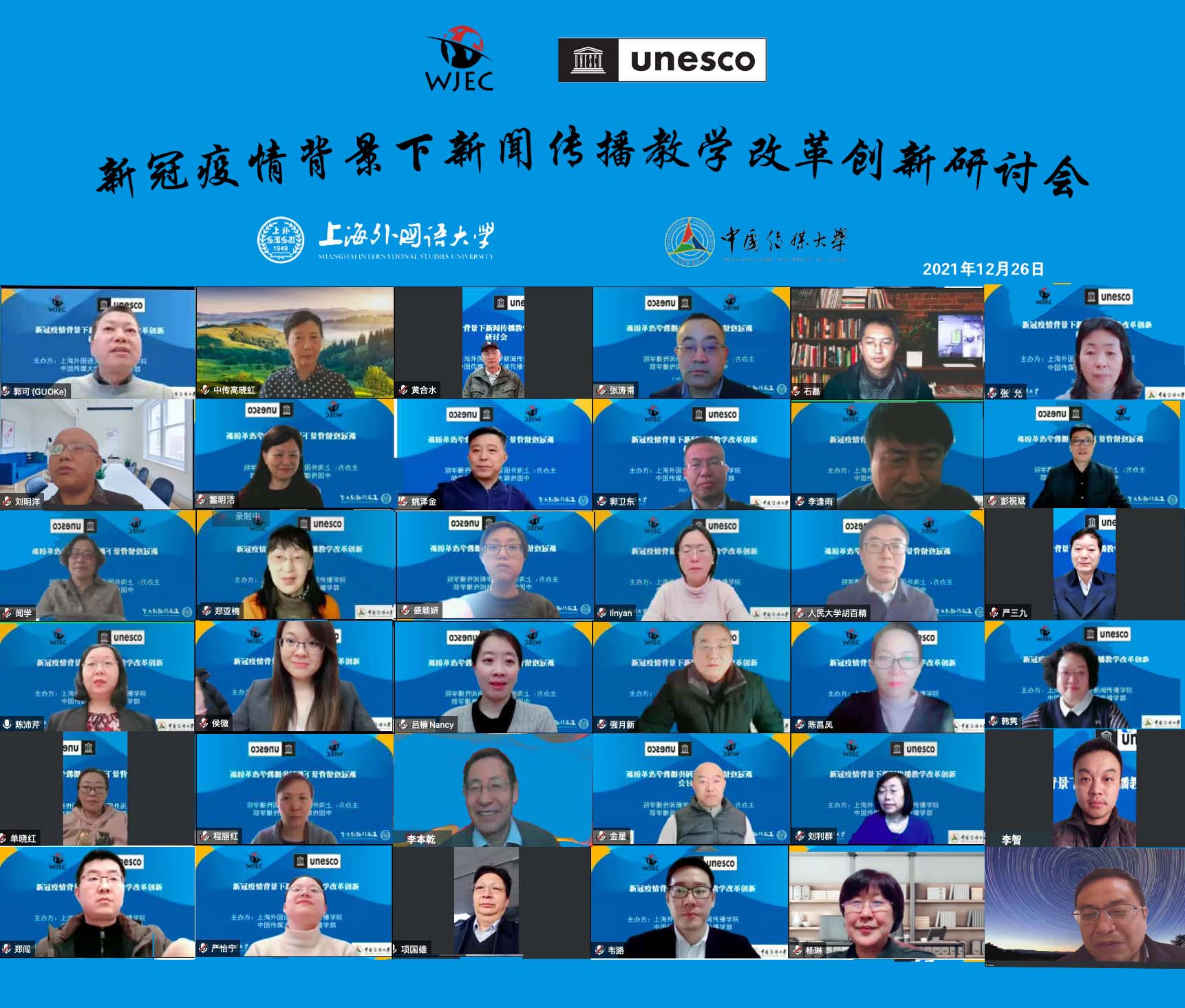 A round-table on China's journalism education during the pandemic was held by the Shanghai International Studies University (SISU) and the Communication University of China (CUC) on Dec 26.