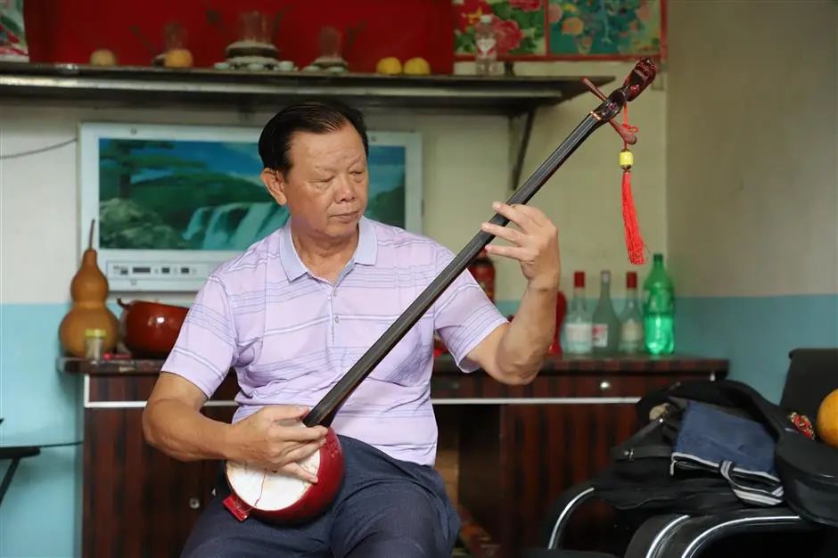 Wei Qingbing welcomes visitors by performing on the duxianqin, or one-stringed dulcimer, in his studio in Nanning, Guangxi Zhuang Autonomous Region.
