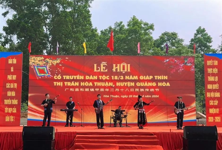 The Dingding Band performs in the March 18th Ethnic Traditional Festival in Quang Hoa County, Vietnam.