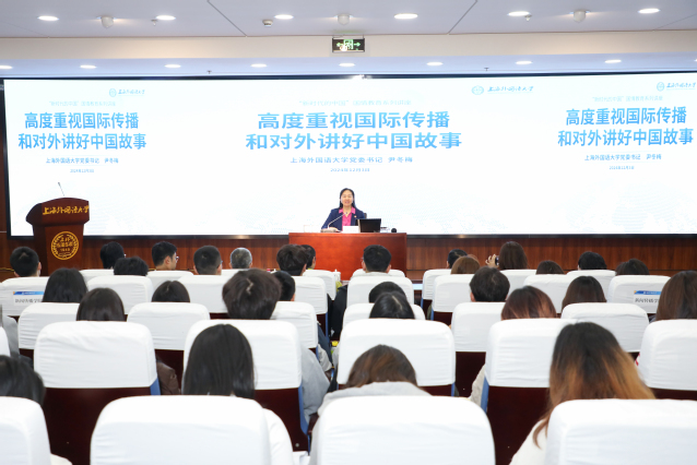 On the afternoon of December 3, the Shanghai International Studies University (SISU) hosted the final lecture of 2024 “China in the New Era” National Conditions Education Series at the International Educational Center. The lecture, titled “Prioritizing International Communication and Telling China’s Story,” was delivered by Yin Dongmei, Party Secretary of SISU. This marked the sixth and final session in the series, which attracted a broad audience of students, faculty, and media professionals.