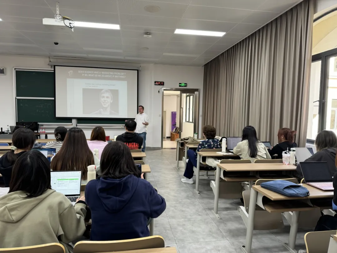 On the afternoon of March 24, Dr. Michael A. Cacciatore, Associate Professor and Co-Director of Center for Health & Risk Communication from University of Georgia, delivered a lecture titled “A Science Communication Primer: Assumptions, Realities, Barriers & Opportunities” at School of Journalism and Communication at Shanghai International Studies University. The event, hosted by Professor Chen Peiqin of SJC, offered a comprehensive overview of the current state of science communication research, its persistent challenges, and emerging opportunities.