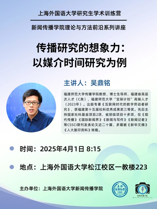 讲座主题:《传播研究的想象力:以媒介时间研究为例》