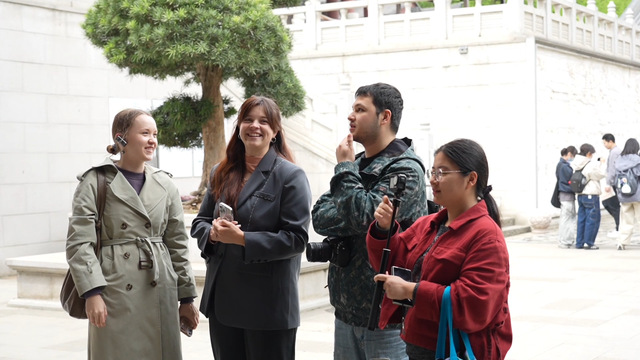 “一座牛首山,半部金陵史。”佛顶寺的飞檐在镜头中勾勒出唐风遗韵,禅院钟声化作短视频中悦动的音轨;佛顶宫穹顶之下,学生们用广角镜头捕捉传统建筑美学与现代建筑技巧的巧妙共振;郑和墓前的松柏苍翠如昨,多语种+国际传播的学子通过多语向世界讲述七下西洋的壮举。三大文化地标的探访足迹,最终转化为照片、V-log、多语种解说等融媒体作品,让传统智慧、海丝精神等文化符号转化为可看、可听、可感的数字内容;让千年金陵文化在当代青年的诠释中焕发出全新的生机与活力。