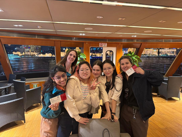 午后,参访团登临东方明珠电视塔263米观光厅,上海景色尽收眼底。外国青年对黄浦江非常感兴趣,好奇的问“SISU在江的哪一边?”讲解员向外国青年们讲解了上海中心大厦632米的螺旋造型、环球金融中心风洞开口的工程智慧、金茂大厦层叠塔形的文化隐喻,外国青年门也对这些堪称当代中国城市雄心的立体教科书赞叹不已。