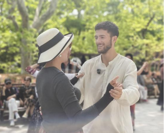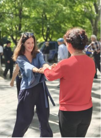 前行不久,外国青年们便遇见了鲁迅公园特有的风景线——活力满满的老者。一位精神矍铄的爷叔见到这些远道而来的朋友,便吹起了擅长的笛子,欢迎外国朋友的到来。在这愉悦的气氛中,青年们与老者们亲密交谈,热情的市民们更是邀请他们一同加入老年舞蹈的行列。一位红衣服的阿姨更是说到:“你们的到来为我们带来了快乐!”青年们也惊叹于上海老年人的活力。